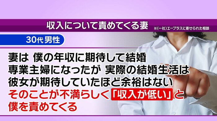 「自分の年収に期待して結婚して専業主婦になった妻が、予想よりも生活に余裕がなく収入が低いと責めてくる」という妻によるモラハラの事例では、吉祥さんが「共稼ぎをする、節約をするなど話し合える環境があるならいいが、相手を見下して一方的に責めるのはハラスメント」と説明しました。