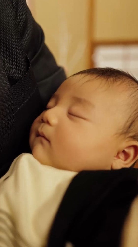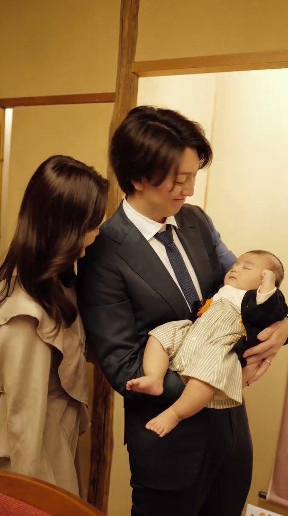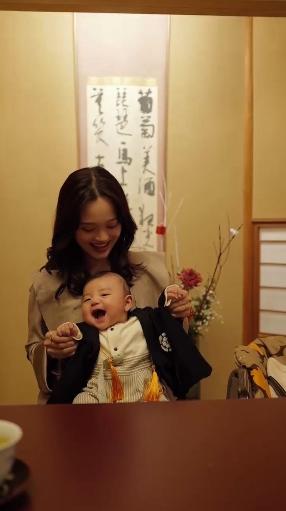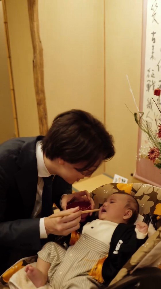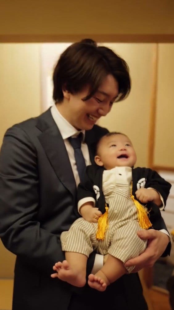 公開された動画には、掛け軸が飾られた料亭のような一室で、息子を膝の上に抱いた田久保さんの姿が。田久保さんは息子の両手を持ち、リズムに乗ってるんるんと一緒に遊んでいて、息子は今にもはしゃいだ声が聞こえてきそうなほど、とても楽しそうな笑顔を見せています。