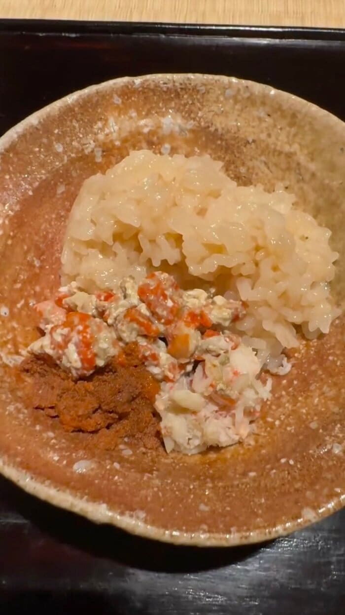 〆にはカニの身と内子・外子を和えたものが添えられた贅沢すぎるご飯。