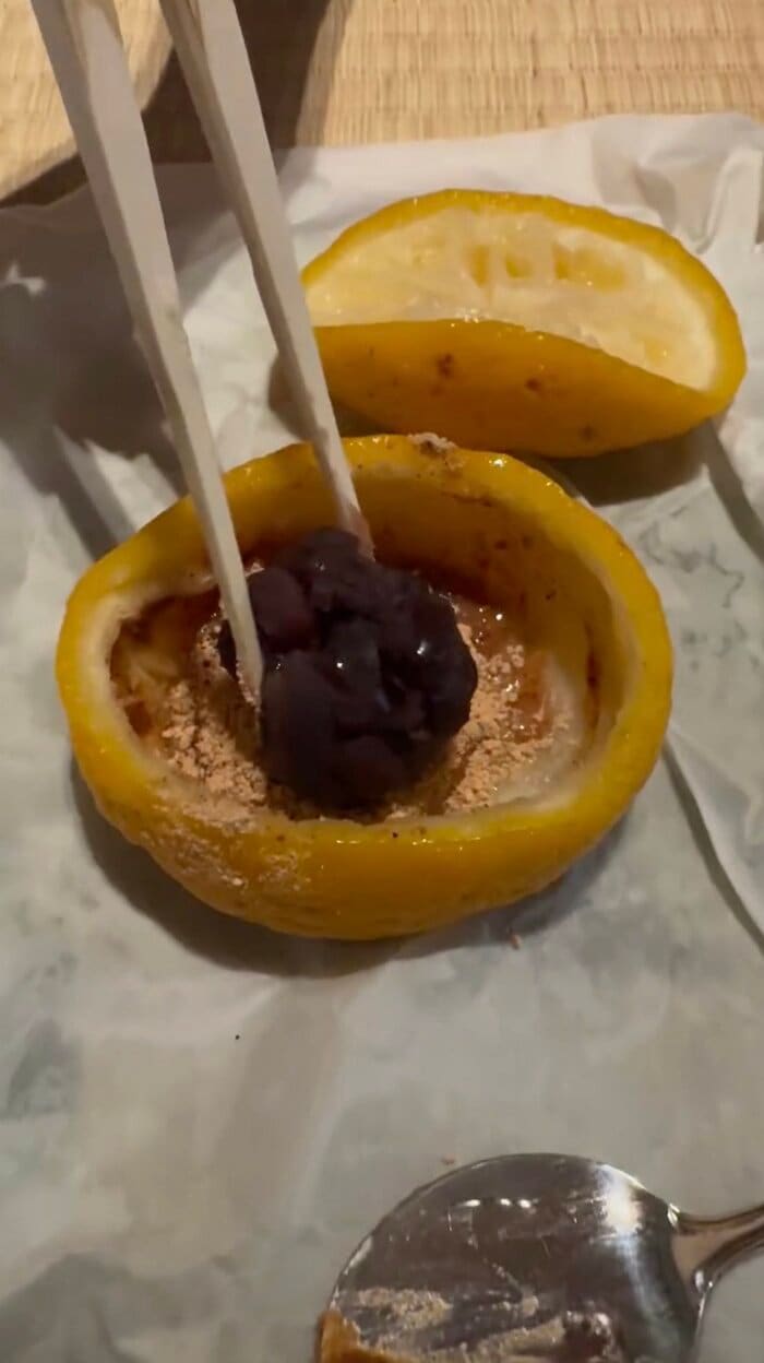 動画の最後に登場したのは、蒸されたゆずを丸々使ったデザート。