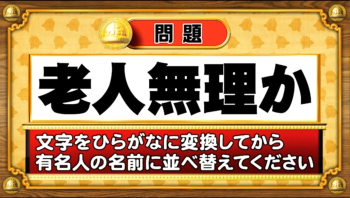 「老人無理か」。この文字をひらがなに変換してから、ある有名人の名前に並べ替えてください。
