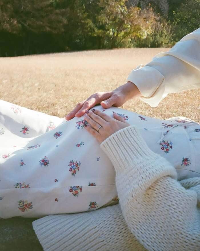 そして、インスタグラムでも「Welcome baby 私たちの元へ新しい命がやってきてくれました」と、新しい命を授かったことを報告。複数枚のマタニティフォトを公開しました。