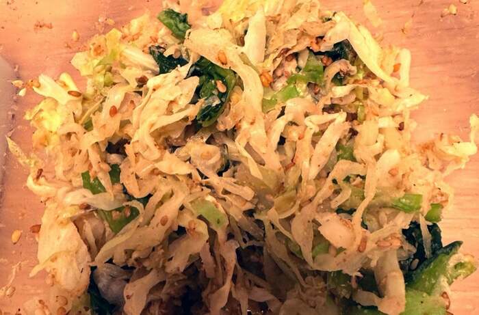 ほうれん草やキャベツを使ったと思われるゴマ和えのサラダも作ったようです。栄養バランスも考えられていて参考にしたいですね。