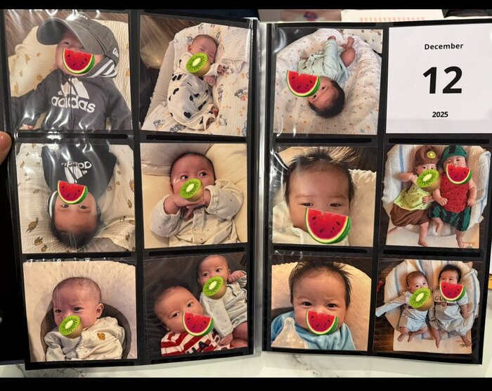 また、ちょっぴり険しい表情を浮かべるお兄ちゃんや、不思議ポーズをする弟くんなど、数々の思い出が詰まったアルバムも公開。中川さんは「親バカが捗ってしまう、、!」と、双子にメロメロな様子が分かります。