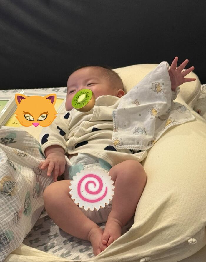 生後2ヵ月双子の“富豪感”ある兄とギョーザ耳になった弟のショットを公開しました。