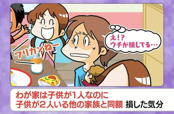 「ママ友とのホームパーティで、会計は家庭の数で割ることに。子供が2人の他の家庭と子供が1人の自分が同額なのが、納得がいかない」というエピソードも登場しました。
