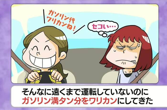 「そんなに遠くない場所に買い物に行くときに、友人が車を出してくれたのだが、ガソリン代の満タン分をワリカンと言われて、セコいなと感じた」というエピソードでは、竹山さんが「気持ちはわかるけど、目的地までのタクシー代を考えたら…」と運転手を擁護。