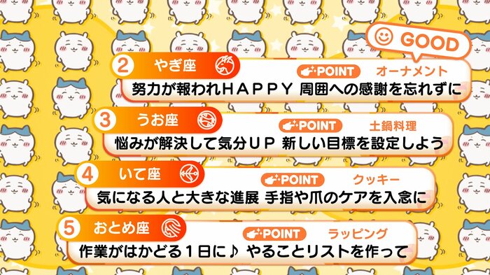 『めざましテレビ』で放送中の「ちいかわ占い」 テレビ放送がない日はお休みで、月~土:朝7時以降に更新予定です。