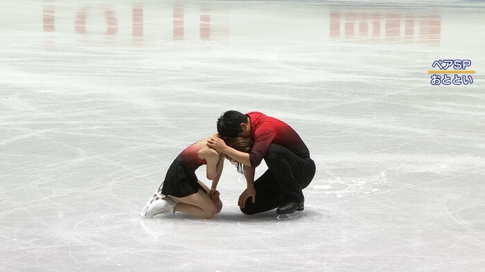 演技終了直後…、左肩を押さえ泣き崩れた三浦選手。