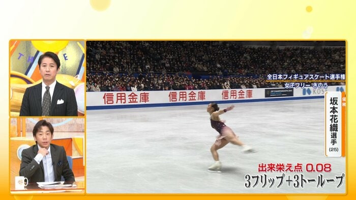 おっしゃるとおりで、あれだけプログラムが複雑になってくると、どうしても動きが小さくなったりエッジが浅くなってくるんですけど、かおちゃん(坂本選手)はスケート技術もすごいんだけど、体力とか筋力、体幹というのがすごいから、すべてがその複雑なプログラムをこなすための体になっているというか。坂本選手だからこそできるプログラムじゃないかなというのは僕見ていて思います。この良さ、もっと見てる人に伝わってほしいな、伝わってるから優勝してるんですけど(笑)。プログラムの完成度だったりスケート技術の高さというところもフィギュアの楽しみの一つなんだよということです。