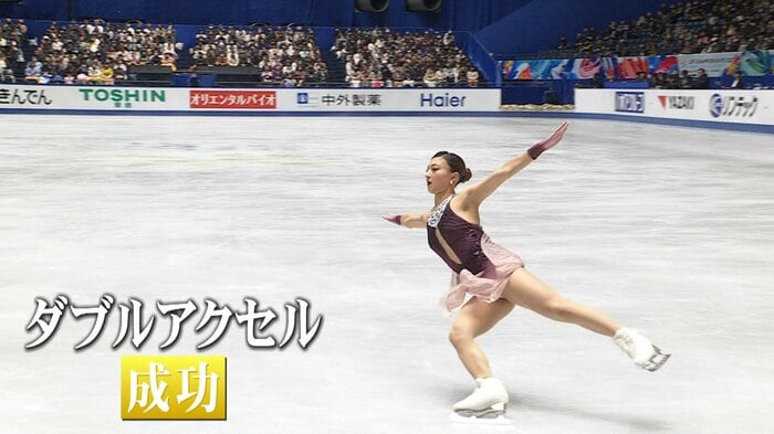 演技冒頭、加速のついたダブルアクセルに成功。