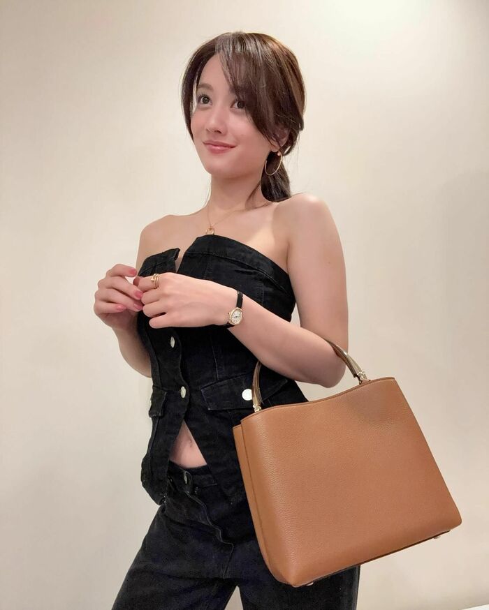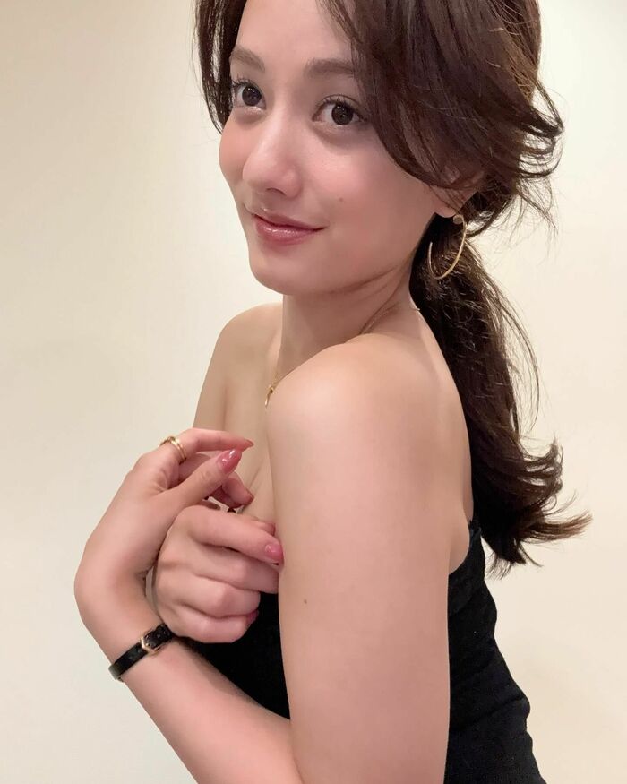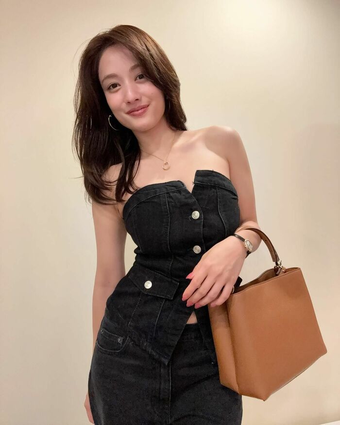 デコルテラインが際立つセクシーなコーディネートを披露し、多くの反響が寄せられました。