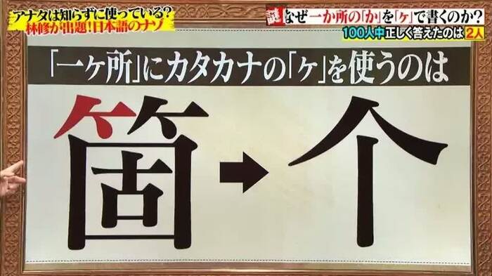 そもそも「ヶ」はカタカナではなく「个」という漢字だ。「か」と読むこの文字は「箇」のたけかんむりから生まれた略字で、そこから「ヶ」が使われるようになったという。