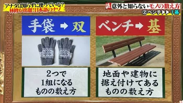 ここでもう少し、日本語の「数え方」についておさらいしておこう。「手袋」と「ベンチ」は、正式にはどうやって数えるのだろうか?