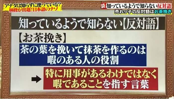 11 月20日(水)放送のフジテレビ『林修のニッポンドリル』は、日本人でもなかなか答えられない「日本語のナゾ」の数々を解明した。