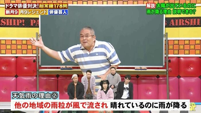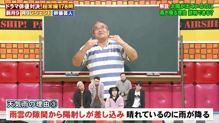 「天気雨」を指す言葉「キツネの嫁入り」を答える問題では、地理担当の村瀬哲史先生が太陽が出ているのに雨が降る理由を解説しました。
