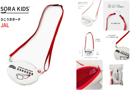 JALの飛行機がかわいらしくクールな斜め掛けポーチになりました。マチは3.5cmでお子様の小物が十分入ります。紐は長さの調節ができるので、小さなお子様から小学生になる頃まで長く使っていただけます。