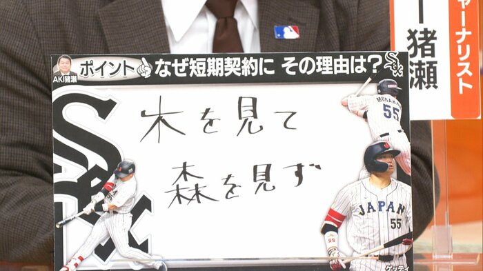 (ホワイトソックスが)来年即地区優勝争いができるかって言ったら、これは再建中のチームなので、「目先の一勝よりも数年後を目指す」というチーム。例えば来年村上選手が極度のスランプに陥ってしまった場合、地区優勝争っているような強いチームだとスタメンを外されてしまう可能性があるんですが、ホワイトソックスはそういう状況にありませんので、村上選手が打っても打たなくてもほぼ毎日のように試合に出れる環境にあるので、そこは非常に村上選手にとってはいい環境だと思います。