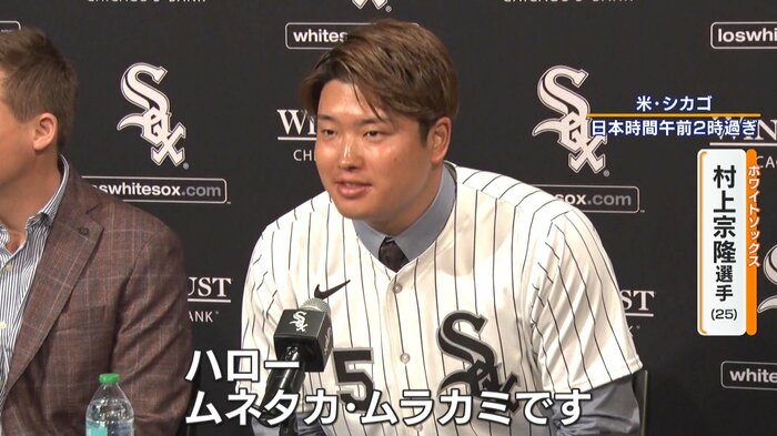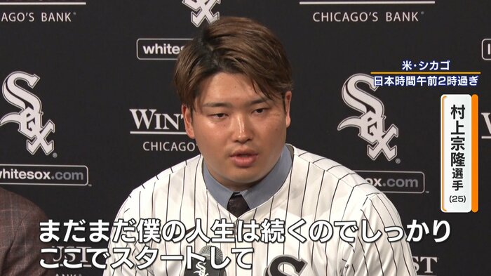 12月23日、日本時間 午前2時過ぎ、村上宗隆選手(25)がアメリカ・シカゴで行われたメジャーリーグ・ホワイトソックスの入団会見に臨みました。