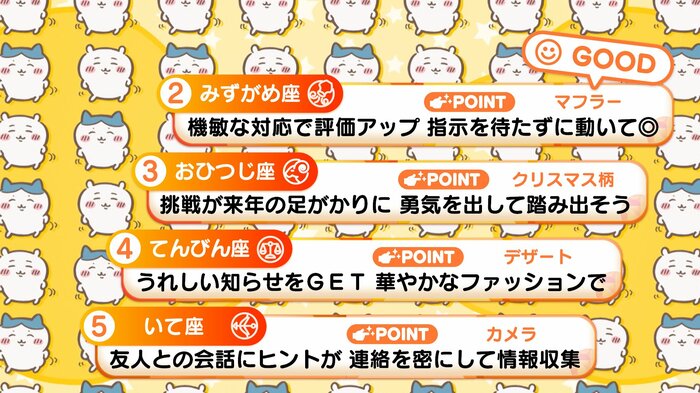 『めざましテレビ』で放送中の「ちいかわ占い」 テレビ放送がない日はお休みで、月~土:朝7時以降に更新予定です。