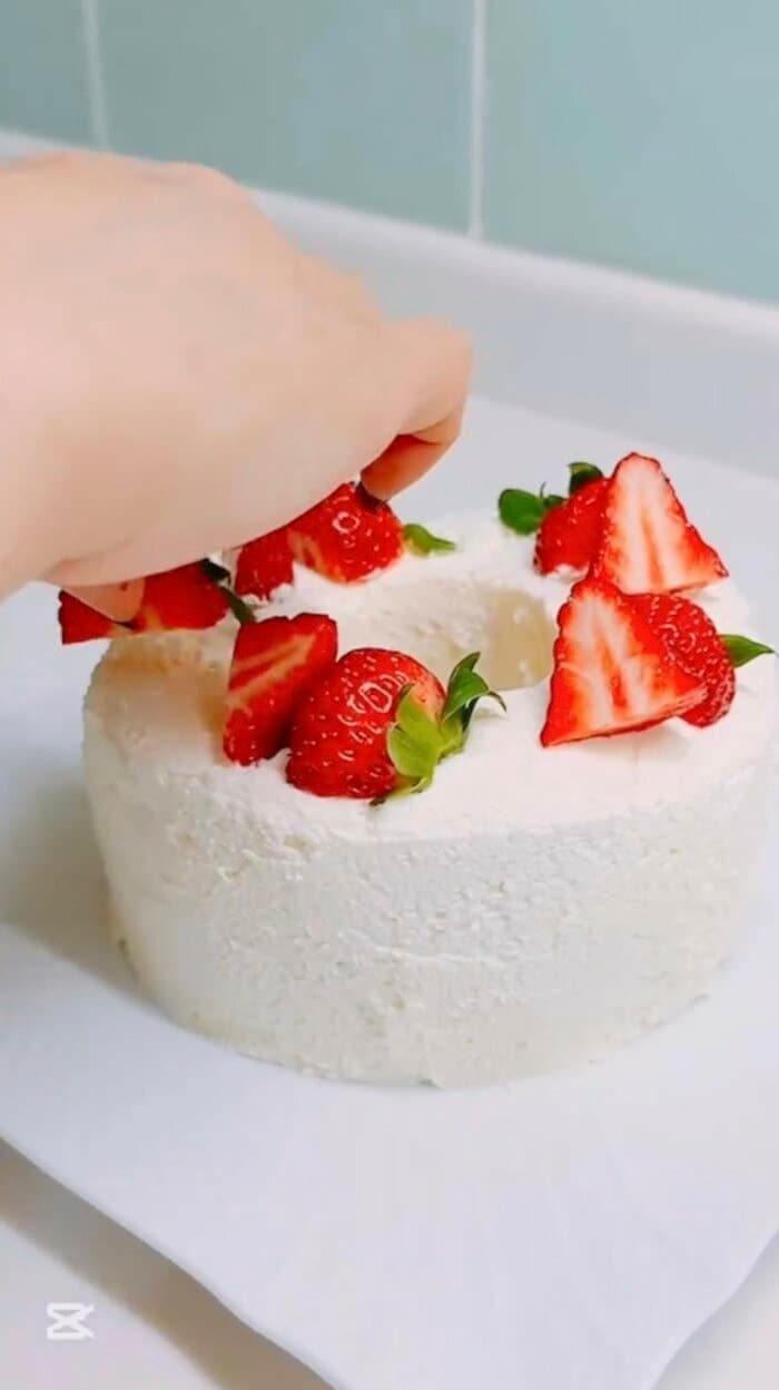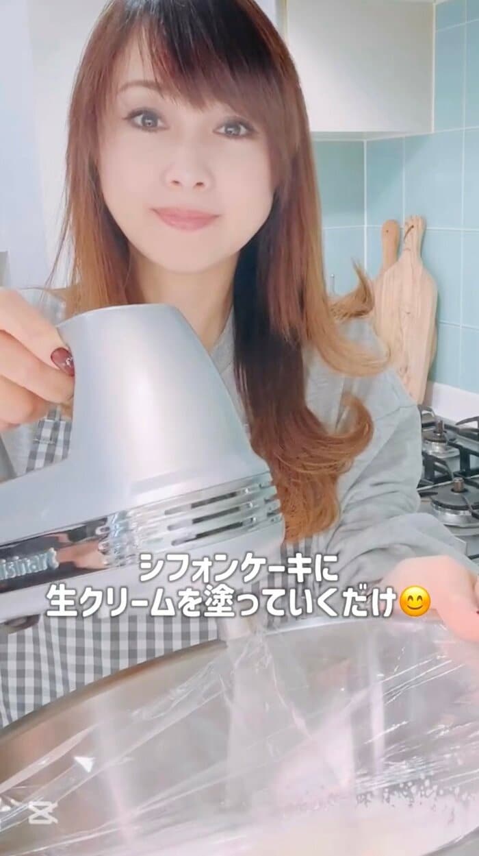 渡辺さんは今回、「シフォンケーキで 簡単クリスマスケーキ」とつづり、動画でケーキ作りの様子を紹介しました。