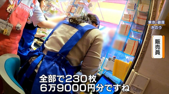 「全部で230枚、6万9000円分ですね。たくさんありがとうございます、大きく当たりますように」