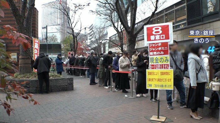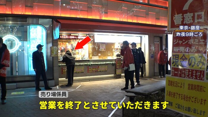 午後8時。閉店の時間を迎えた西銀座チャンスセンターですが、まだ宝くじを求める人の列が途切れず、営業時間を延長していました。