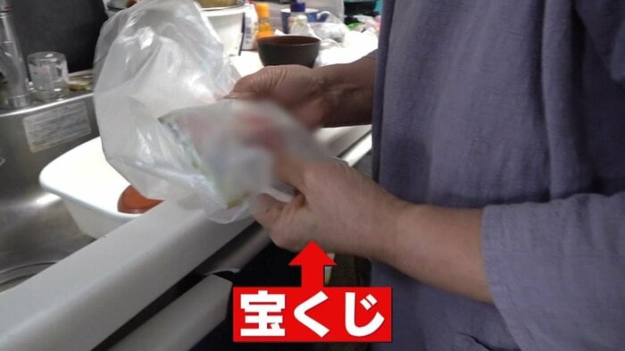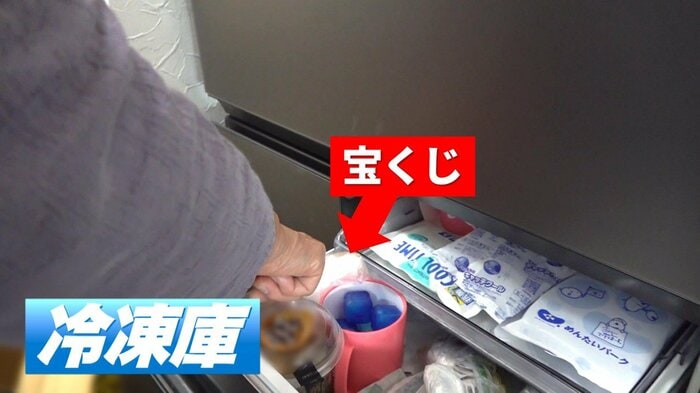 驚く取材スタッフを横目に、宝くじを袋の中に入れると、そのまま「冷凍庫」の中に放り込みました。