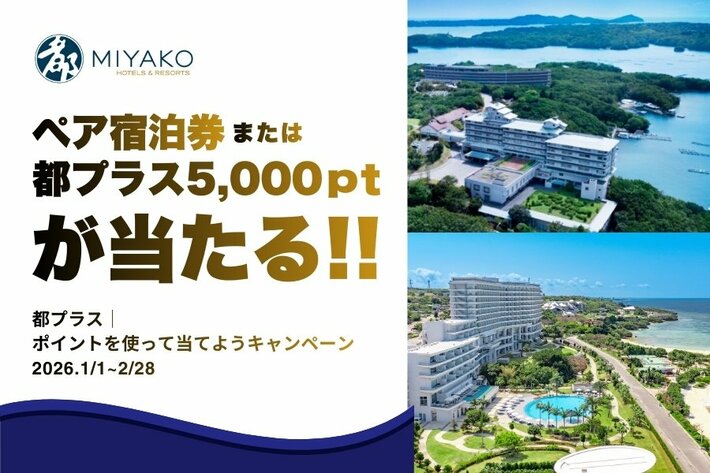 都ホテルズ&リゾーツ(所在地:大阪市天王寺区上本町6-1-55/運営:株式会社近鉄・都ホテルズ)では、ロイヤリティプログラム「都プラス」会員様を対象に、「ポイントを使って当てようキャンペーン」を、2026年1月1日(木・祝)から2月28日(土)まで実施します。
