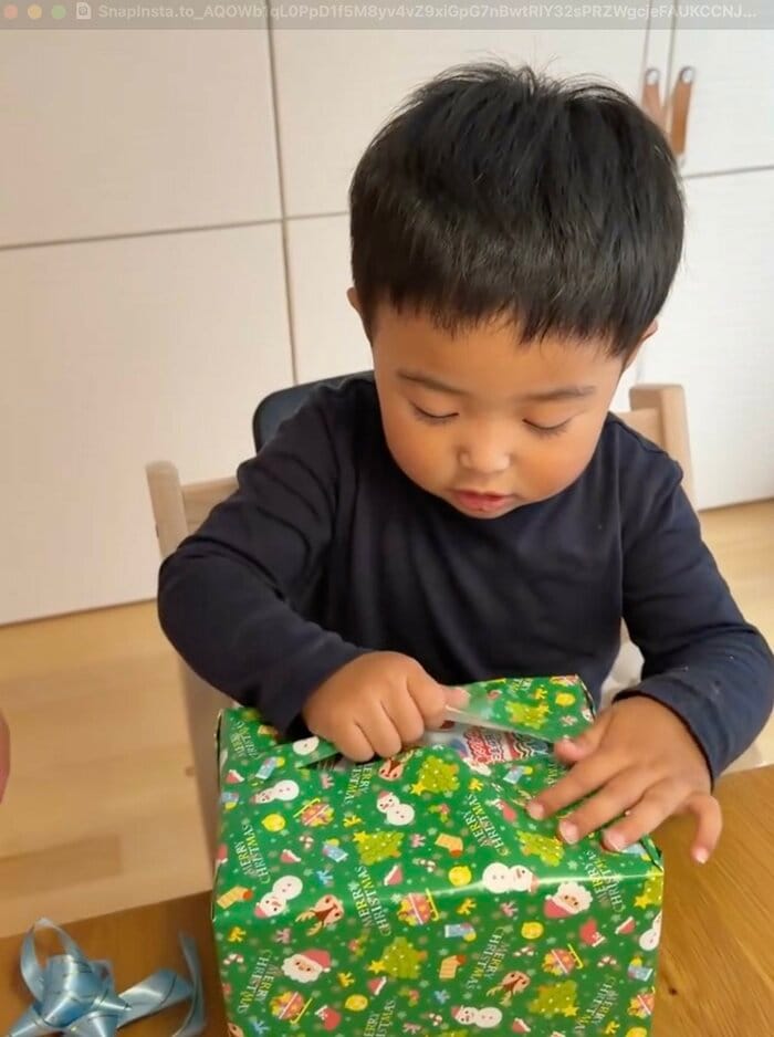さらに、誕生日プレゼントを開けるリアムくんの様子も披露したユージさん。