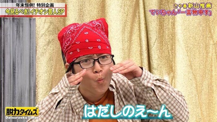 現れたのは、赤いバンダナを頭に巻いた女性ピン芸人・でいちゃんで、新山さんは思わず「誰??」と声が漏れフリーズ。