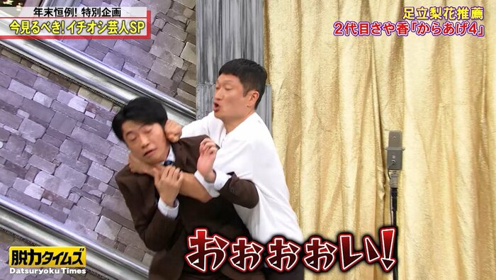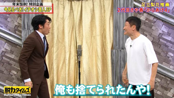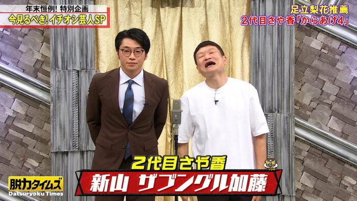 結局、新山さんは、かけつけた代役=ザブングル加藤さんと、2代目さや香として、漫才「からあげ4」を披露することに。