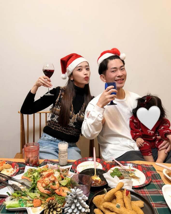 そして「家族でイヴを過ごせました」と続け、太田さんや娘と自宅でクリスマスパーティーを楽しんでいる家族ショットを披露。近藤さんと太田さんはサンタさんの赤い帽子をかぶってグラスを片手ににっこりと笑顔を見せ、太田さんの膝に抱かれた娘はクリスマスにぴったりな赤い洋服を着ていてとってもかわいらしいですね♪