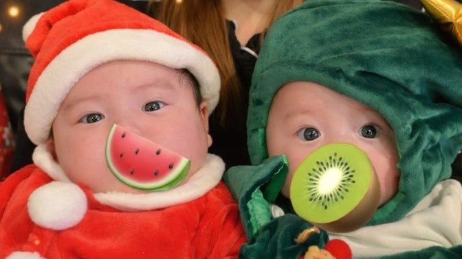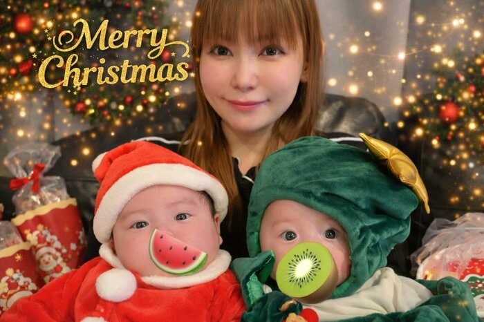この投稿に「目が2人ともキラキラ」「とても賑やかなクリスマスですね」「むちむちでかわいい」などのコメントが寄せられています。