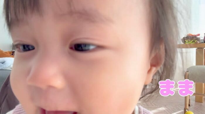 1歳になってまもない頃は「ないない」を気まぐれで言っていただけだったと言いますが、この1カ月で急成長!他には、外に行きたいときに「靴」を意味する「くっく」と言ったり…