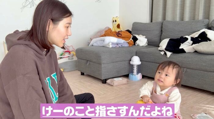 西野さんが「ママは?」と言うと、「まま」と復唱するにこりちゃん。