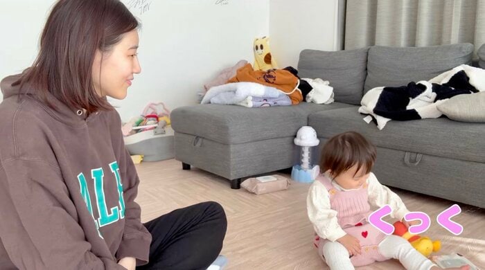 今回は自身のYouTubeチャンネルで、1歳1カ月のにこりちゃんの成長を報告しました。