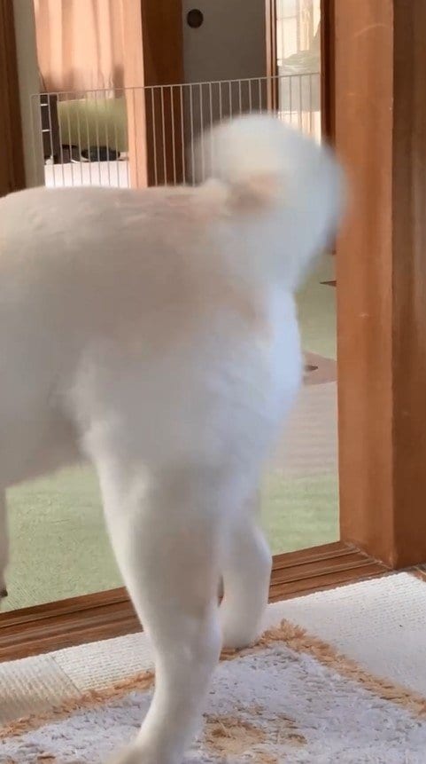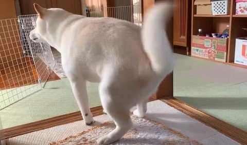 場所を移動してからも、ずっと尻尾を振っていたはるちゃんですが、今度はお尻も一緒にフリフリ♪