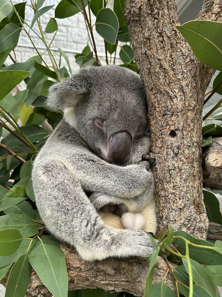 木の上で気持ちよさそうにスヤスヤと眠るのは、兵庫県にある動物園『淡路ファームパーク イングランドの丘』で暮らす、コアラのノゾムくん、3歳です。