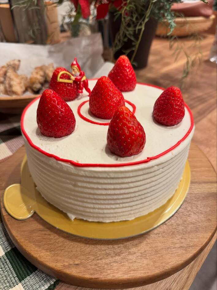 他にも、大きなイチゴが乗ったホールケーキも堪能したようで、家族での時間を楽しんだ様子がうかがえます。