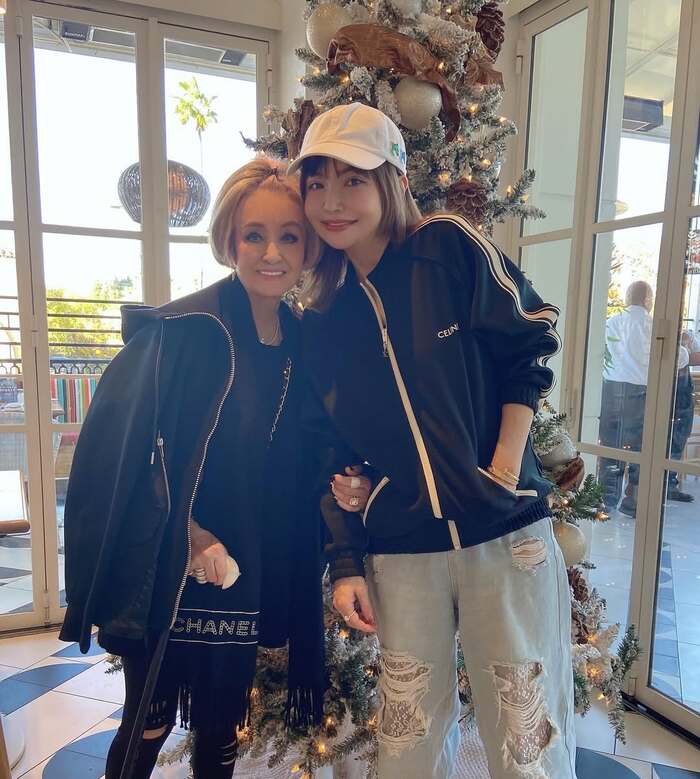 今回の投稿では「今日のイブのLAは大雨なので、お家でゆっくり、ぬくぬく過ごしています。」とつづり、母とのツーショットを公開しています。