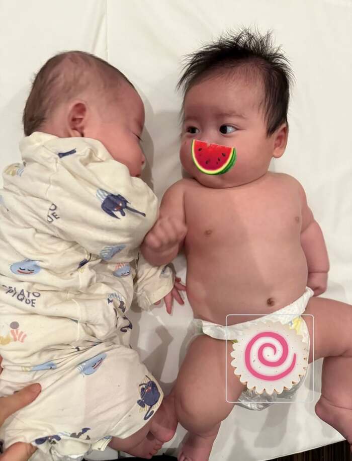 生後2ヵ月双子のかわいすぎる“どアップ”ショットを披露