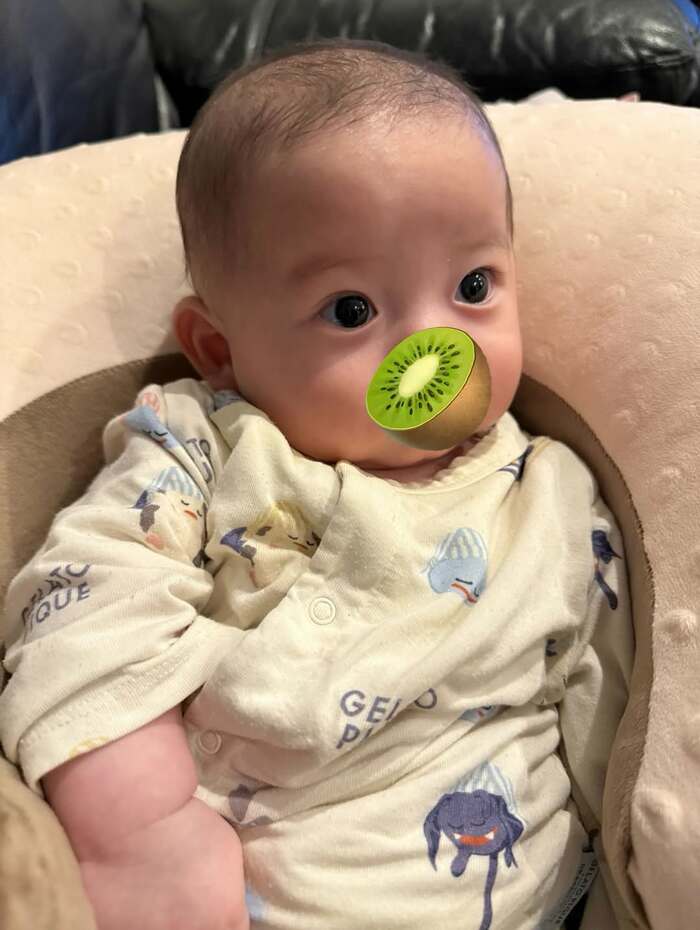 クッションに寄りかかり、リラックスした様子で周囲を見つめている弟くんのショットなども披露!うるっとした瞳やぷっくりとしたほっぺたがとってもかわいくて、癒やされます。