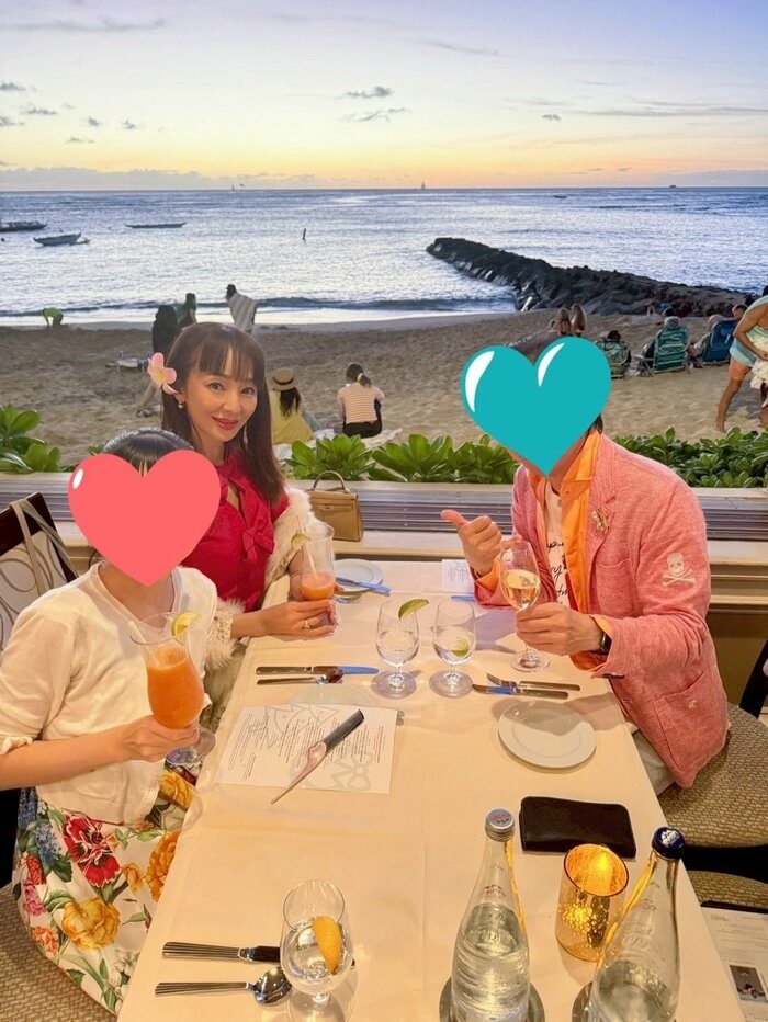 神田うの 14歳娘&夫とハワイの夕焼けの海をバックに一緒にパシャリ!