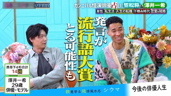 そんな笠松さんですが結婚願望はあるそうで、占いによると婚期は2026〜2027年。澤井さんの婚期は2025年だったそう。ガックリと肩を落とした澤井さんは、吹っ切るように「仕事どうですか?」と前のめりでシウマさんに聞きました。