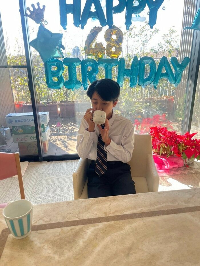 また別の投稿では、長男・新之助さんの写真も公開されています。日差しが差し込む室内には市川さんの誕生日の時に子供たちがサプライズで飾りつけした「HAPPY BIRTHDAY」と金色の「48」の風船がそのまま飾られています。