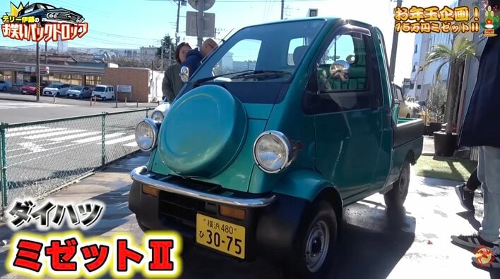 それは平成8年(1996年)式の軽貨物自動車、ダイハツ『ミゼットⅡ』。グリーンに塗装されたボディと1人乗りのコンパクトな車体がなんとも可愛いです。