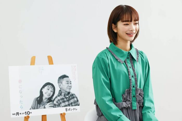 1月22日(月)、奈緒さんと木梨憲武さんがW主演を務める、月10ドラマ『春になったら』(カンテレ・フジテレビ系)に出演中の見上さんが、大阪・カンテレ本社で行われた取材会に出席し、作品の見どころや撮影裏話などを語りました。