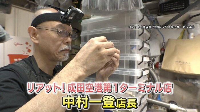 成田空港第一ターミナルに店を構える、修理サービス「リアット!」の修理人・中村一登店長。