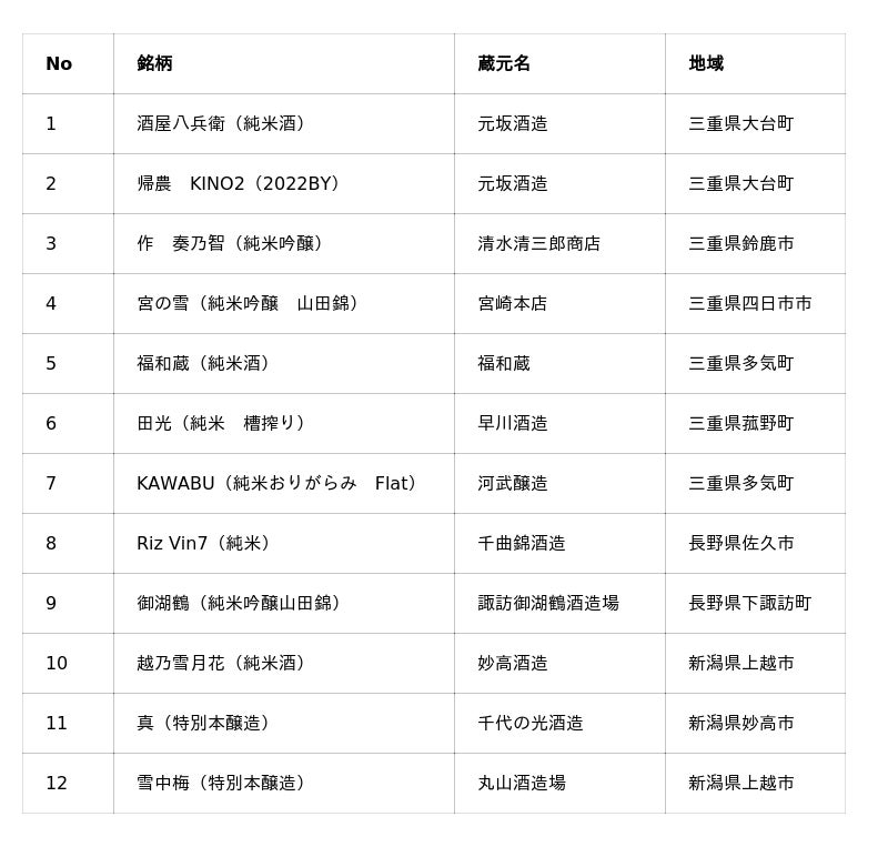■「三重×信越」提供予定の地酒ラインナップ